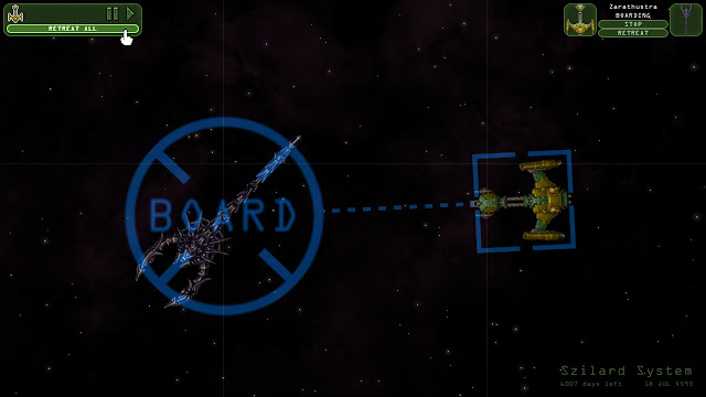 But even with more of everything, the game is still quite simple. You are given a map of the sector, and simply click on which system you want to visit. Combat is generally infrequent, but operates like a very hands off RTS. Like SAIS, Weird Worlds puts you in the role of starship captain, assigned to a twenty year mission in the "plausibly implausible" Purple Void sector. You get to boldly go on your very own little star trek, visiting planets and meeting aliens while upgrading your ship to perfect fighting form. You'll gather rare specimens, ancient artefacts and encounter a large variety of intelligent life. All machine race bent on destroying everything? Friendly hyper advanced friends to humanity? Warlike reptile race that could plausibly be a Gorn cousin? All the sci-fi tropes are dutifully covered.
